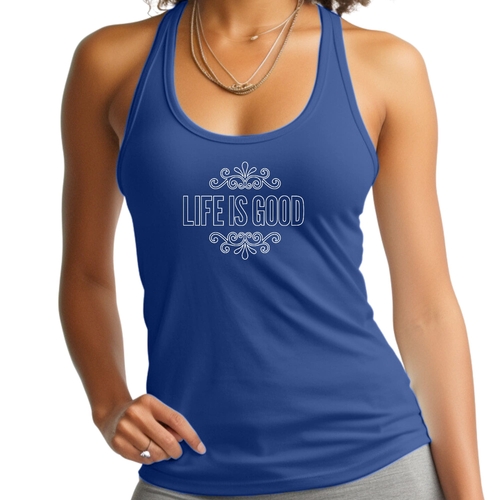 This tank top is not just for workouts; it’s a versatile piece that can be styled in various ways. Pair it with your favorite leggings for a sporty look, or wear it with shorts for a casual summer outfit. The uplifting 'Life is Good' graphic adds a touch of positivity to your wardrobe, making it a great choice for everyday wear.