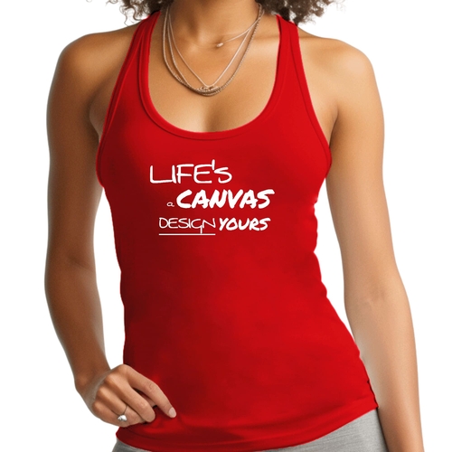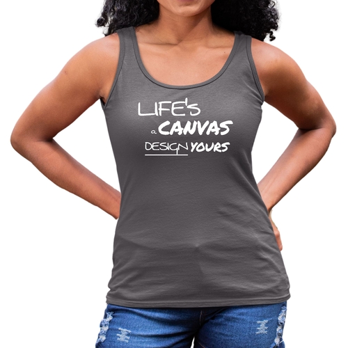 Introducing our Women's Fitness Tank Top featuring the inspiring 'Life's a Canvas' design. This motivational graphic T-shirt is not just a piece of clothing; it's a statement of aspiration and positivity. Perfect for those who love to express themselves through their activewear, this tank top combines style, comfort, and functionality.