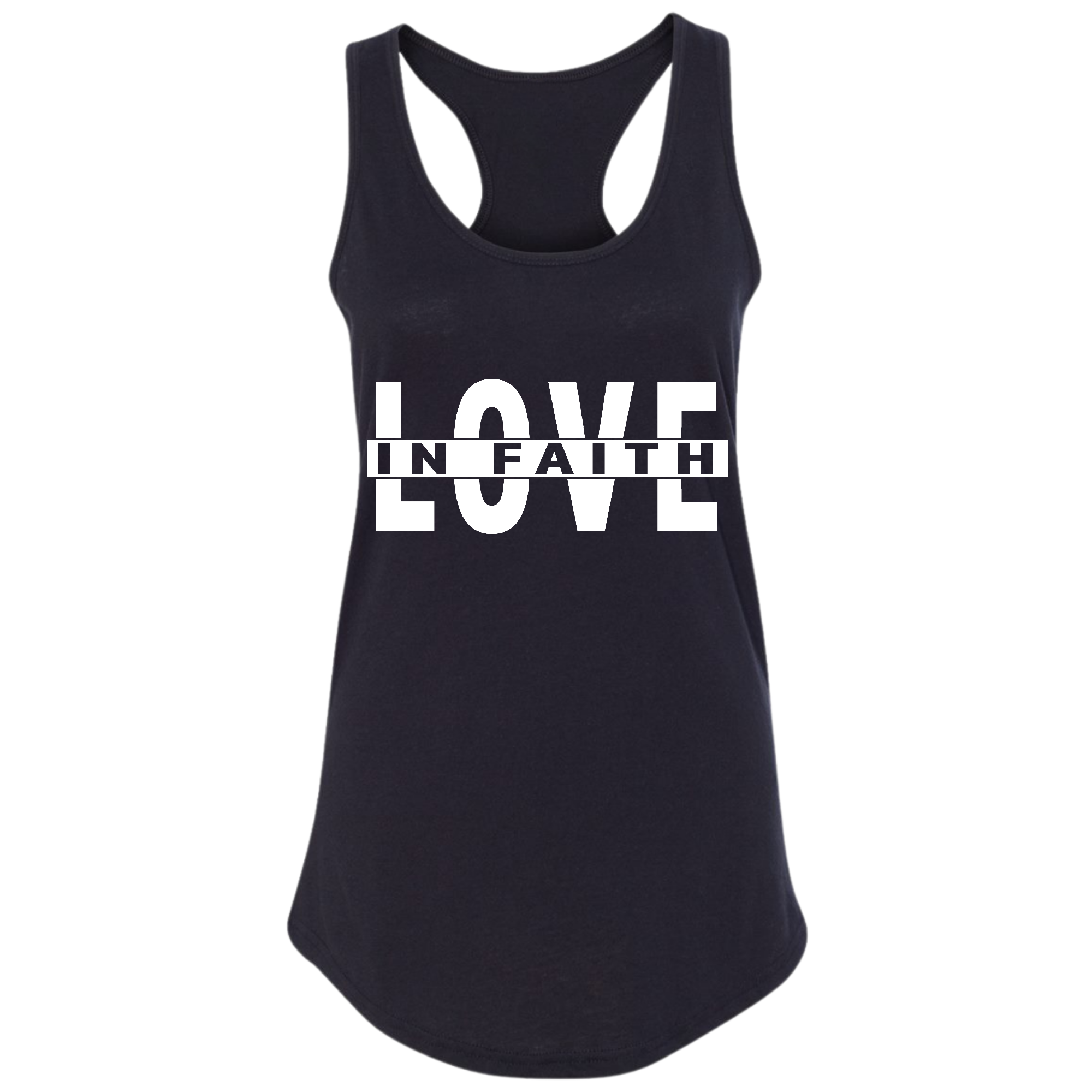 This tank top is not just for workouts; it's versatile enough to be worn for various occasions. Whether you're attending a yoga class, going for a hike, or simply running errands, this tank top will keep you looking stylish and feeling comfortable. The 'Love in Faith' graphic adds a personal touch, making it a great conversation starter and a way to share your beliefs with others.