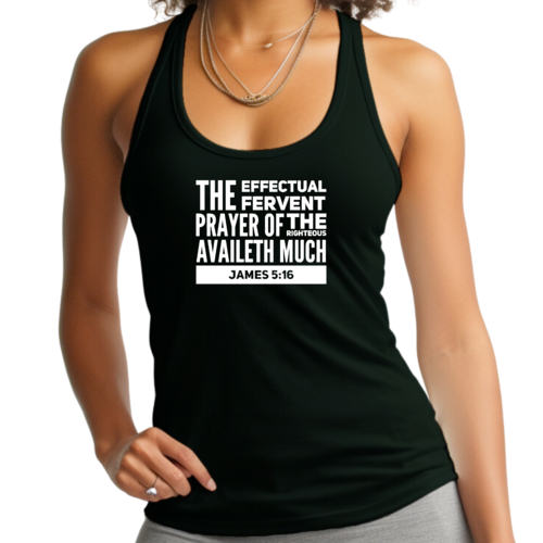 This tank top is not just for workouts; it can also be worn as casual wear. Pair it with your favorite leggings or shorts for a laid-back look, or layer it under a jacket for a stylish outfit. The graphic design featuring 'The Effectual Fervent Prayer' serves as a reminder of the power of prayer and positivity, making it a meaningful addition to your wardrobe.