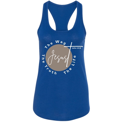 Introducing our Women's Fitness Tank Top Graphic T-shirt, featuring the inspiring message 'Jesus The Way The Truth The Life'. This stylish and comfortable activewear is perfect for women who want to express their faith while staying fit. Made from soft, preshrunk cotton, this tank top retains its shape and softness even after multiple washes, ensuring that you look and feel great every time you wear it.