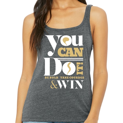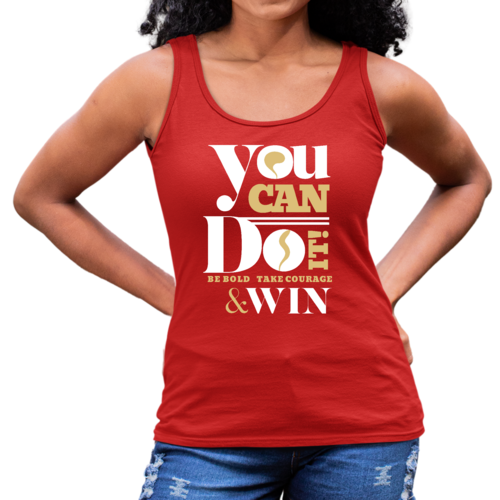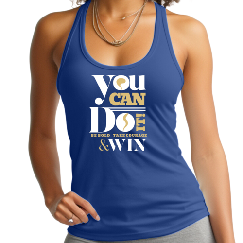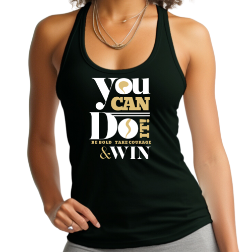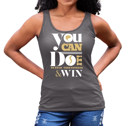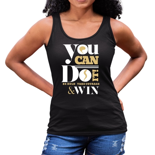 Introducing our Women's Fitness Tank Top Graphic T-shirt, a perfect blend of style and motivation. This tank top features the empowering phrase, 'You Can Do It - Be Bold Take Courage Win,' making it an ideal choice for those who seek inspiration during their workouts. Whether you're hitting the gym, going for a run, or simply lounging at home, this tank top will keep you comfortable and motivated.