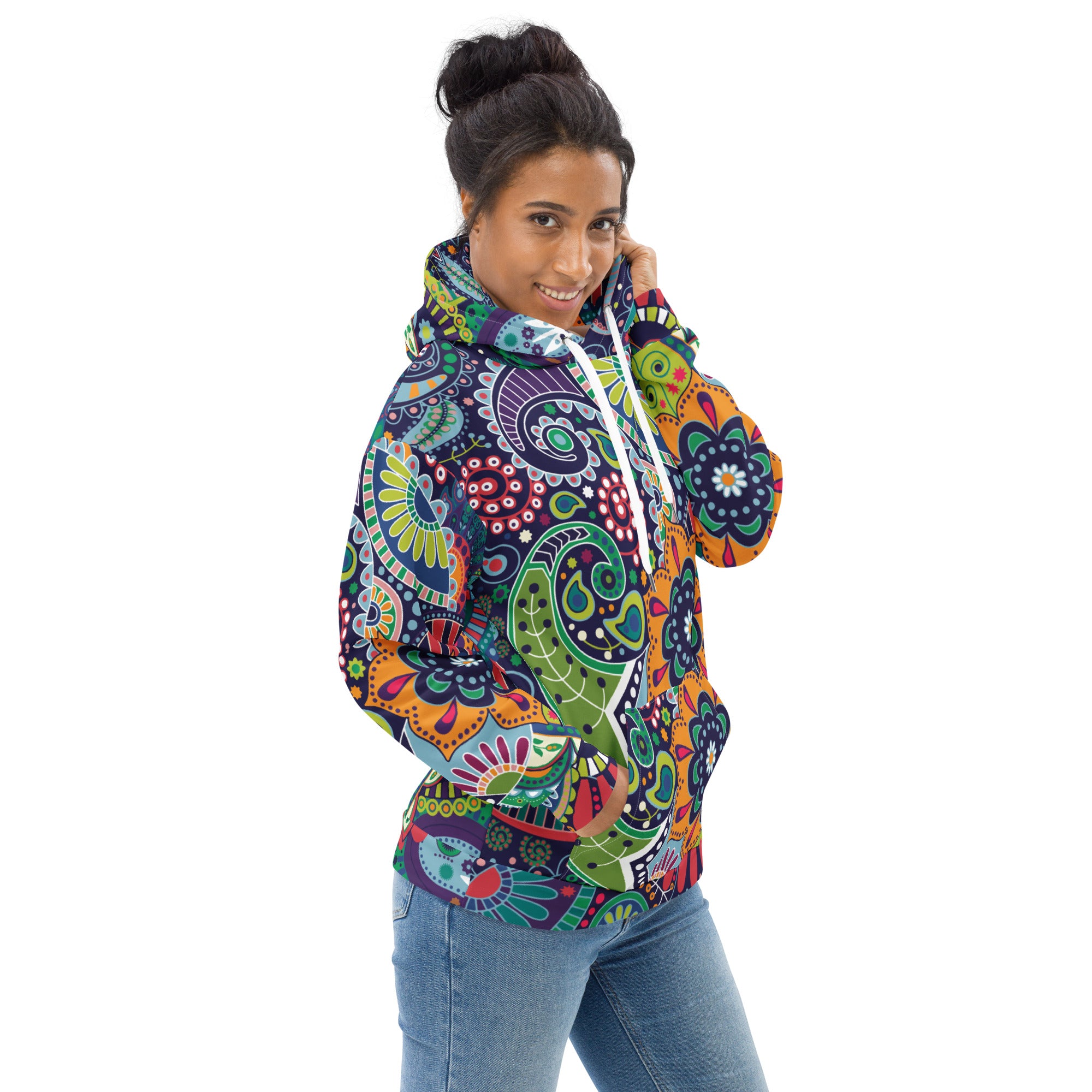 In summary, the Womens Graphic Hoodie Floral Paisley 22523 is a fashion-forward piece that combines style, comfort, and quality. Its unique design and functional features make it a must-have for any fashion-savvy individual. Don't miss out on the opportunity to elevate your casual wear with this stunning hoodie!