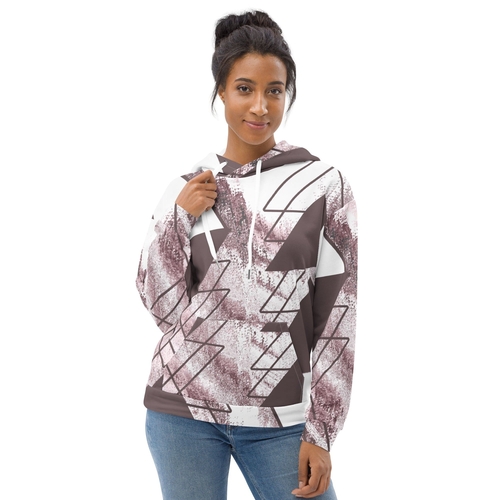 This hoodie features a striking mauve rose and white triangular colorblock pattern that adds a contemporary touch to your outfit. The dynamic all-over print is not just eye-catching but also showcases your individuality. Whether you're heading out for a casual day with friends or lounging at home, this hoodie will elevate your look effortlessly.