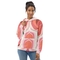 The standout feature of this hoodie is its dynamic all-over print that captures attention and showcases a modern bohemian aesthetic. The pink and white swirl lines create a visually striking pattern that is sure to turn heads. Whether you're heading out for a coffee date or lounging at home, this hoodie adds a bold and edgy touch to your wardrobe.