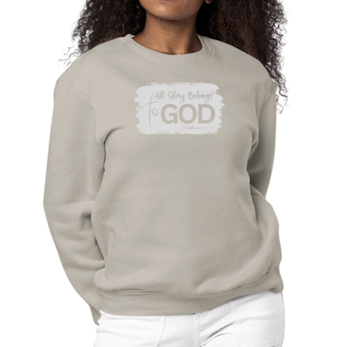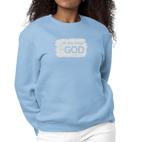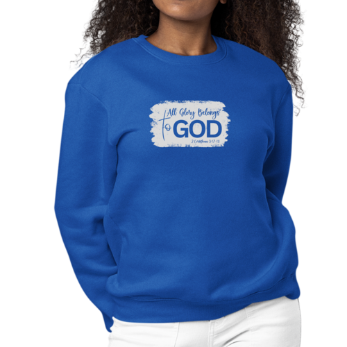 Introducing the Womens Graphic Sweatshirt, a perfect blend of style, comfort, and faith. Featuring the inspiring phrase 'All Glory Belongs to God', this sweatshirt is not just a piece of clothing; it's a statement of belief and a celebration of your faith. Made from a high-quality cotton-polyester blend, this sweatshirt offers a soft and cozy feel, making it ideal for everyday wear.