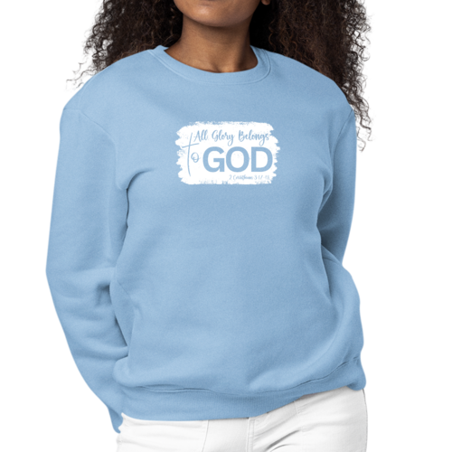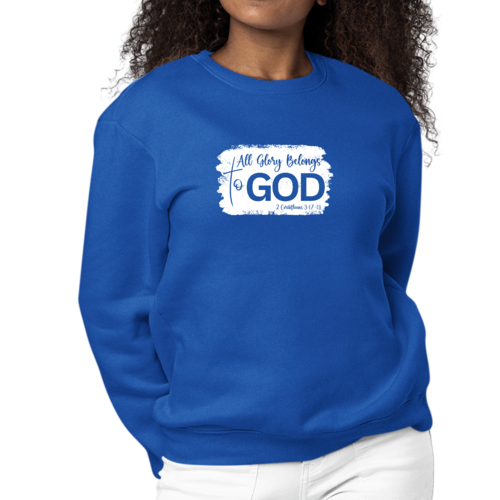 Introducing our Women's Graphic Sweatshirt, emblazoned with the inspiring phrase 'All Glory Belongs to God.' This sweatshirt is not just a piece of clothing; it is a statement of faith and a testament to your beliefs. Made from a high-quality 50/50 cotton and polyester blend, this sweatshirt offers the perfect balance of comfort and durability, making it ideal for everyday wear.