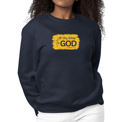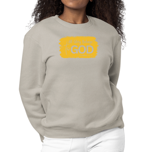 In summary, the Women's Graphic Sweatshirt, 'All Glory Belongs to God' in Golden Yellow, is a must-have for anyone looking to combine comfort with a message of faith. With its durable construction, stylish design, and easy care instructions, it is the perfect addition to your wardrobe. Embrace your faith and showcase your style with this beautiful sweatshirt.
