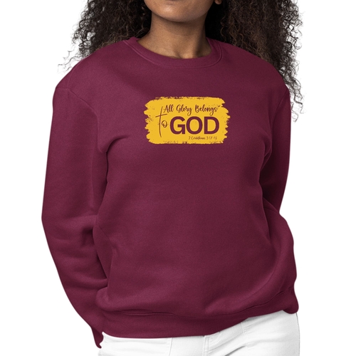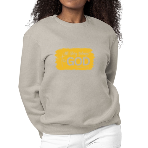 Introducing the Women's Graphic Sweatshirt, featuring the inspiring phrase 'All Glory Belongs to God' in a vibrant Golden Yellow. This stylish crewneck sweatshirt is designed for comfort and versatility, making it a perfect addition to your casual wardrobe. Crafted from a high-quality blend of 50% cotton and 50% polyester, this sweatshirt offers a soft and cozy feel, ideal for everyday wear.