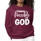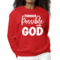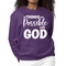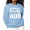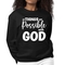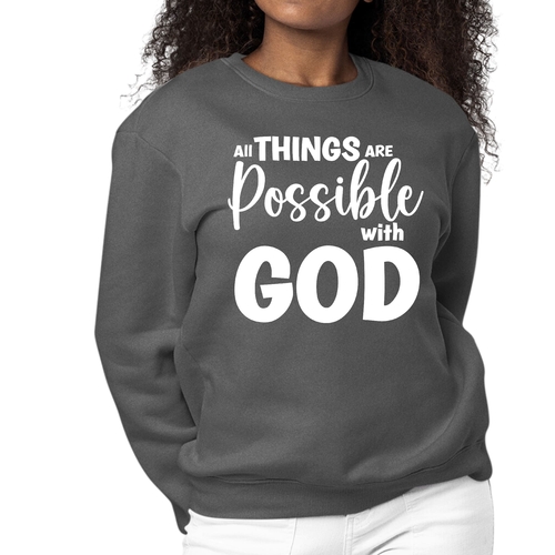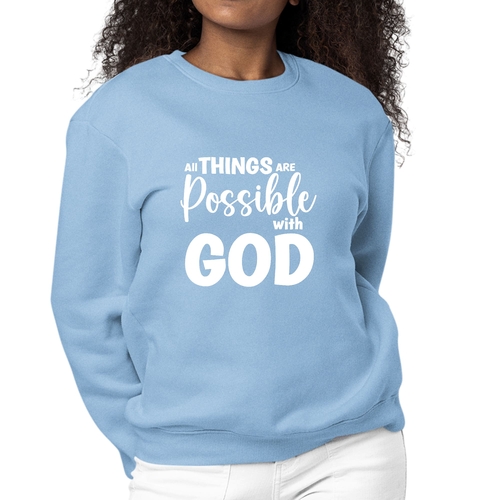 In summary, our Women's Graphic Sweatshirt with the phrase 'All Things Are Possible With God' is not just a piece of clothing; it's a statement of faith and a testament to comfort and style. With its durable construction, easy care instructions, and inspiring design, it's a must-have addition to any wardrobe. Embrace your faith and showcase your style with this beautiful sweatshirt today!