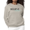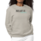 In summary, the Women's Graphic Sweatshirt with the 'Believe and Achieve' slogan is a must-have for anyone looking to combine comfort, style, and inspiration. With its durable construction, easy care instructions, and motivational message, this sweatshirt is sure to become a favorite in your wardrobe.