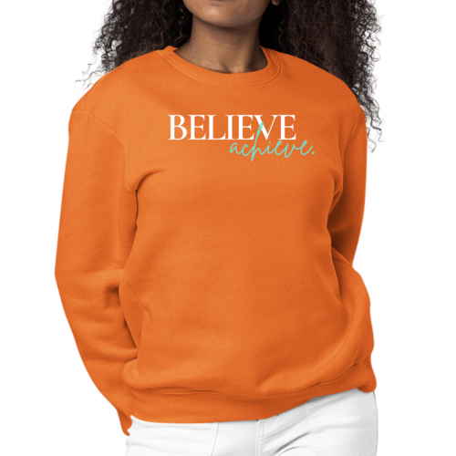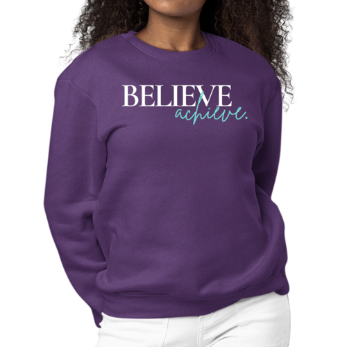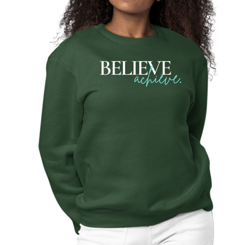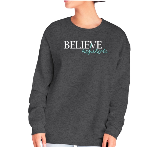 Looking for a thoughtful gift for a friend or loved one? The 'Believe and Achieve' sweatshirt makes an excellent present for birthdays, holidays, or just because. Inspire someone special in your life with this motivational piece of clothing that they can wear with pride.