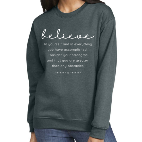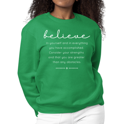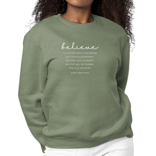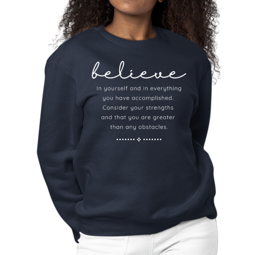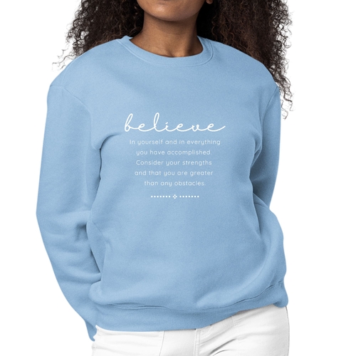 Looking for a thoughtful gift? The Women's Graphic Sweatshirt is an excellent choice for birthdays, holidays, or just because. Its inspirational message resonates with many, making it a meaningful present for friends, family, or even yourself. Show your loved ones that you believe in them by gifting this stylish and motivational sweatshirt.