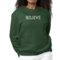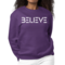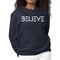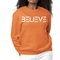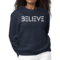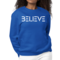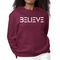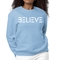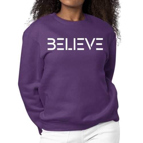 The 'Believe' graphic on the front of the sweatshirt serves as a daily reminder to stay positive and motivated. The classic crewneck style, combined with ribbed collar, cuffs, and waistband, adds a touch of elegance to a casual look. This sweatshirt is designed to fit both women and men, offering a regular unisex fit that flatters all body types.