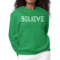 Maintaining the quality of your Women's Graphic Sweatshirt is simple. It is machine washable, allowing for easy cleaning. For best results, hang dry or tumble dry on low heat to preserve the fabric's integrity and the vibrant 'Believe' print. This practicality makes it a go-to choice for busy individuals who value both style and convenience.