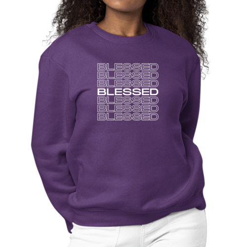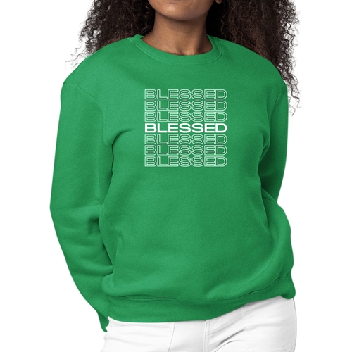 Introducing our Women's Graphic Sweatshirt with a Blessed Stacked Print, a perfect blend of style and comfort. This sweatshirt is designed for women who appreciate both fashion and functionality. Made from a durable 50/50 cotton and polyester blend, it ensures that you stay comfortable throughout the day, whether you're lounging at home or out with friends.