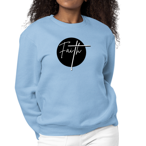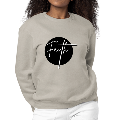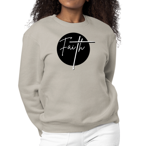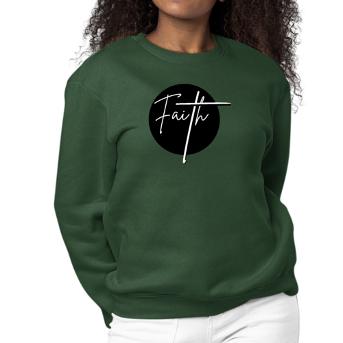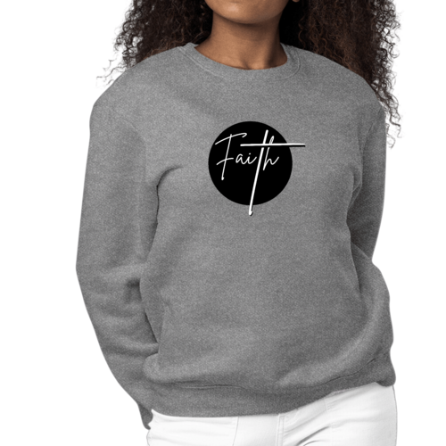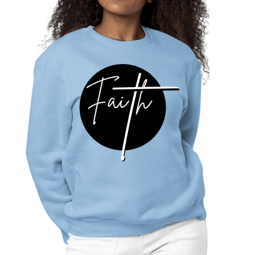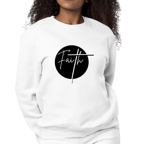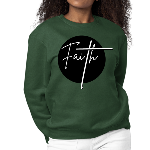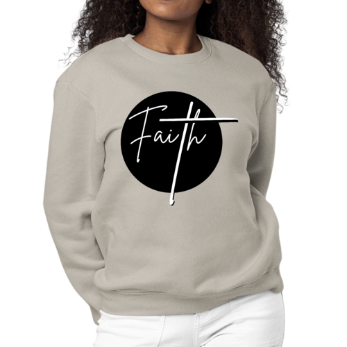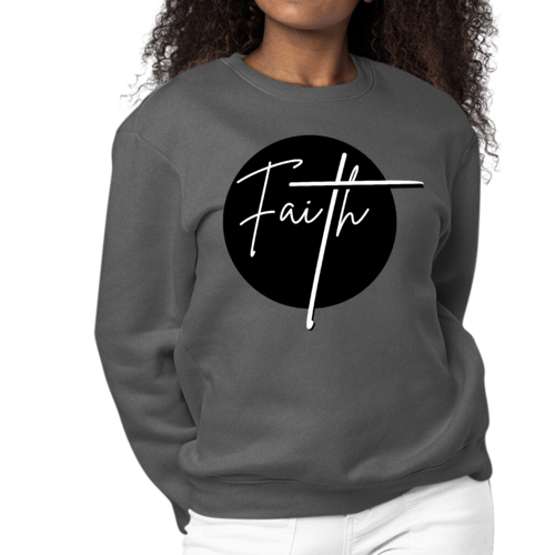 Introducing our Women's Graphic Sweatshirt featuring a striking Faith print, designed for those who want to express their beliefs while staying comfortable and stylish. This sweatshirt is perfect for casual outings, lounging at home, or even running errands. Made from a durable 50/50 cotton and polyester blend, it offers the perfect balance of softness and durability, ensuring it will last through countless washes and wears.