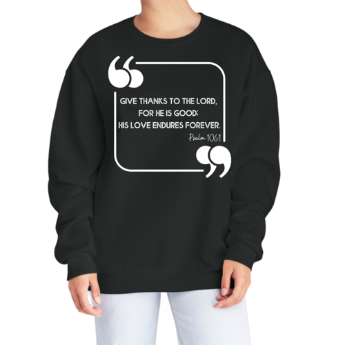 Women's Graphic Sweatshirt featuring 'Give Thanks to the Lord' design, made from soft and durable fabric.