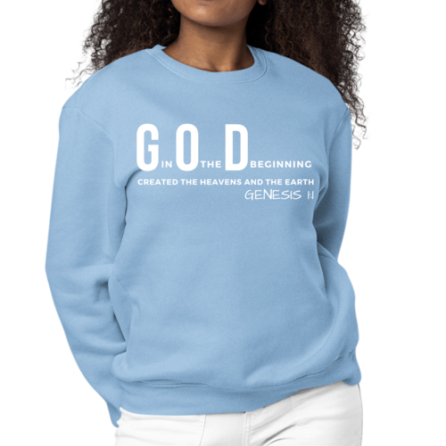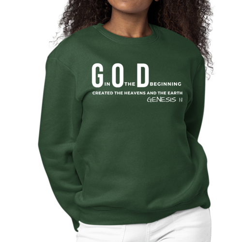 In summary, our Women's Graphic Sweatshirt with the 'God in the Beginning' print is a must-have for anyone looking to blend comfort with a powerful message. With its durable construction, stylish design, and easy care instructions, this sweatshirt is sure to become a favorite in your wardrobe. Don't miss out on the opportunity to express your faith and style simultaneously!