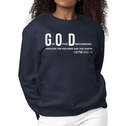Introducing our Women's Graphic Sweatshirt featuring the inspiring print 'God in the Beginning Created The Heavens And The Earth.' This sweatshirt is not just a piece of clothing; it's a statement of faith and comfort. Perfect for casual outings, lounging at home, or even as a thoughtful gift for a loved one, this sweatshirt combines style with a powerful message.