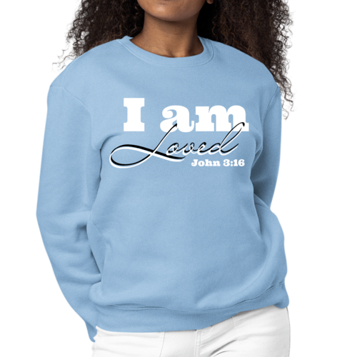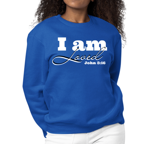 Introducing our Women's Graphic Sweatshirt featuring the uplifting message 'I Am Loved' inspired by John 3:16. This sweatshirt is not just a piece of clothing; it’s a statement of faith and comfort. Made from a durable 50/50 cotton and polyester blend, it ensures you stay cozy while showcasing your love for scripture. The long sleeve design makes it perfect for layering during cooler months, while the crewneck style offers a classic look that pairs well with any outfit.