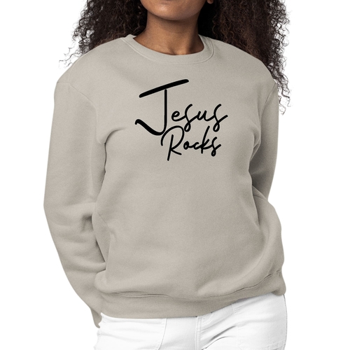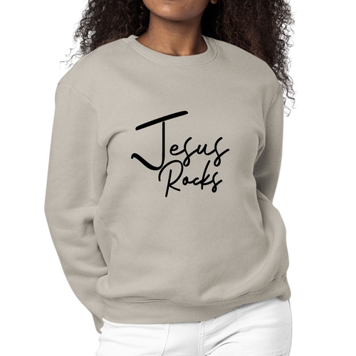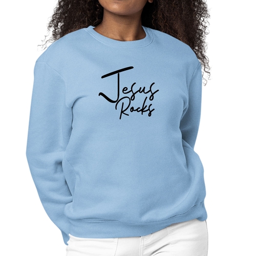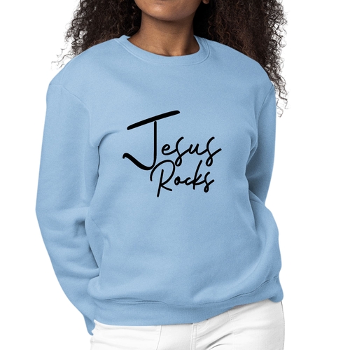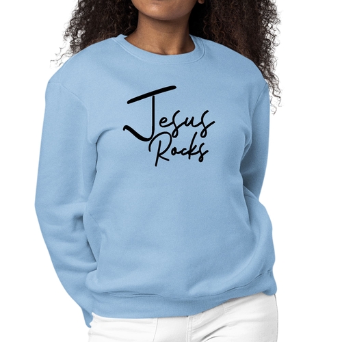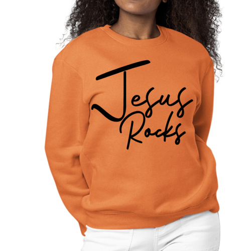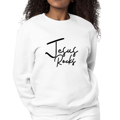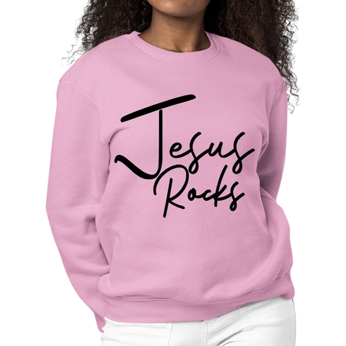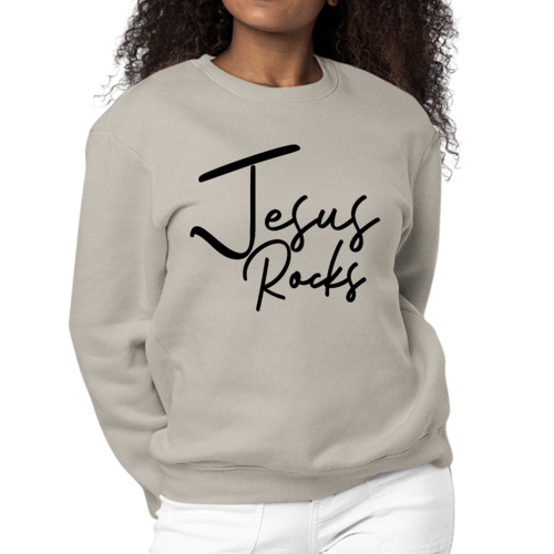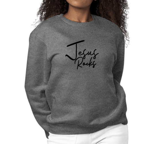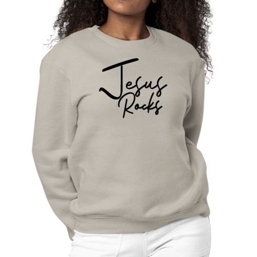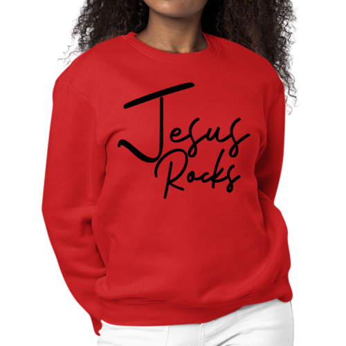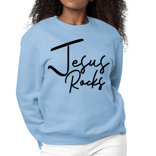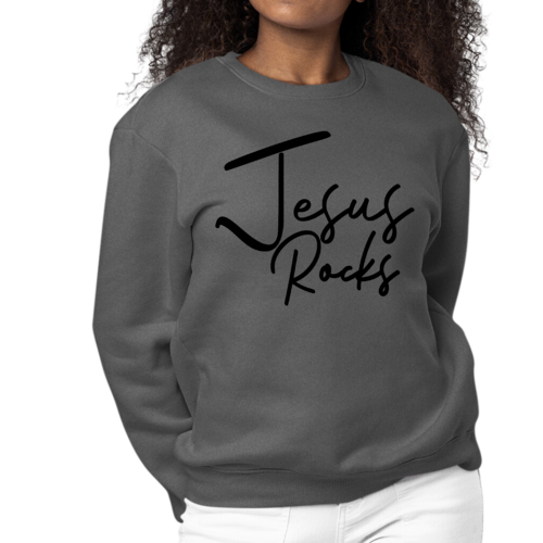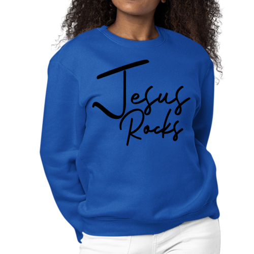 Whether you're attending a church service, going out with friends, or just relaxing at home, this Women's Graphic Sweatshirt is the perfect choice. Its versatile design allows you to pair it with jeans, leggings, or shorts, making it a staple in your wardrobe. The uplifting message of 'Jesus Rocks' serves as a reminder of your faith and can inspire those around you.