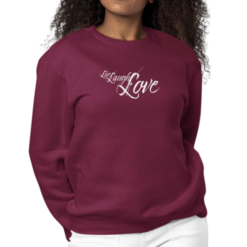 Introducing our Women's Graphic Sweatshirt featuring the uplifting phrase 'Live Laugh Love' in a stylish light grey color. This sweatshirt is designed not only for comfort but also for durability, making it an ideal choice for everyday wear. Whether you're lounging at home, running errands, or meeting friends, this sweatshirt will keep you looking chic and feeling cozy.
