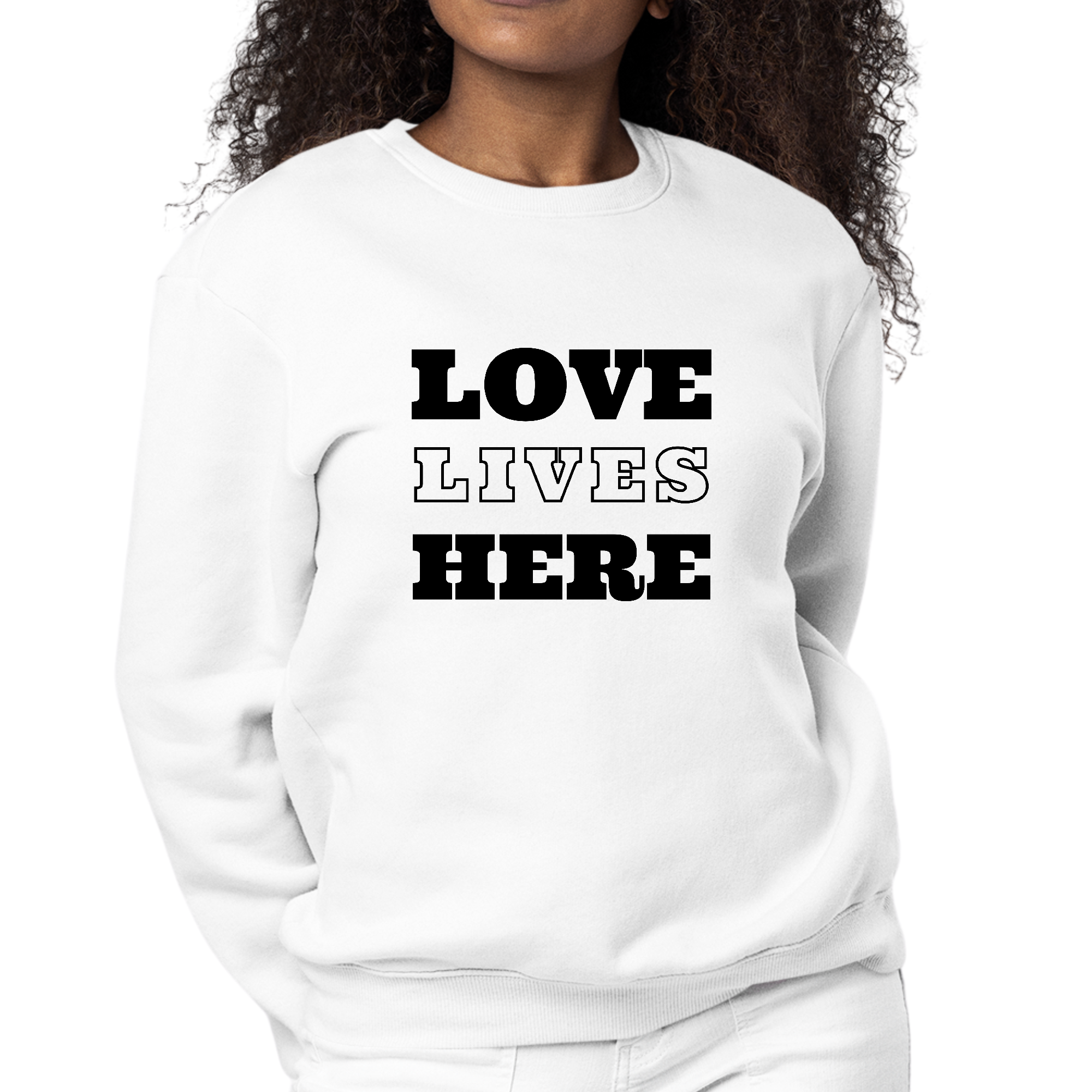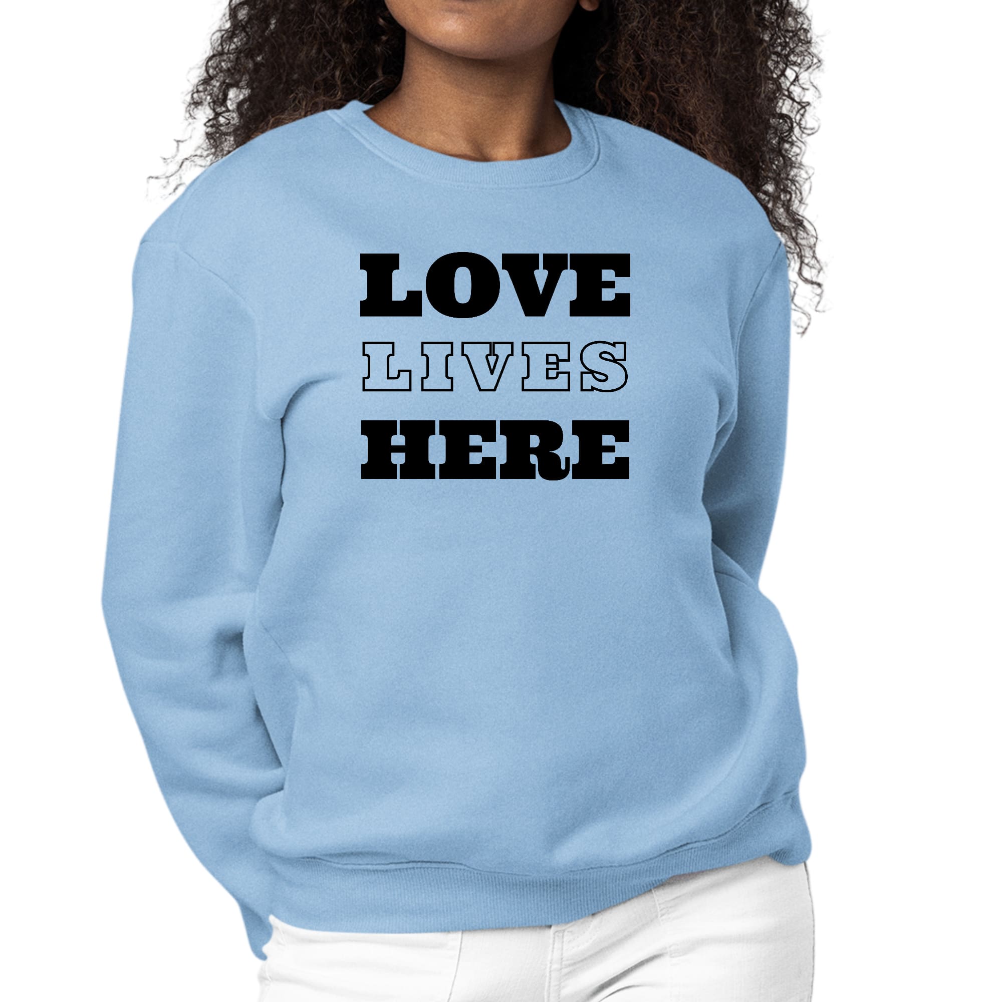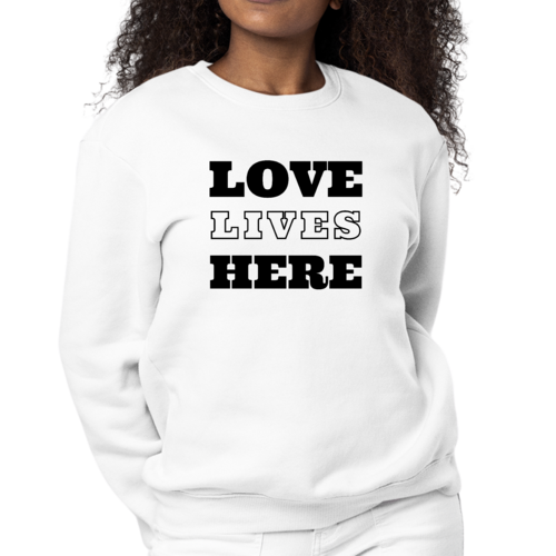 In summary, the Womens Graphic Sweatshirt, Love Lives Here is a must-have for anyone seeking a blend of comfort, style, and affordability. Its classic design, quality fabric, and versatile nature make it an essential piece for any wardrobe. Embrace everyday comfort with this trendy sweatshirt that truly embodies the spirit of love and style.