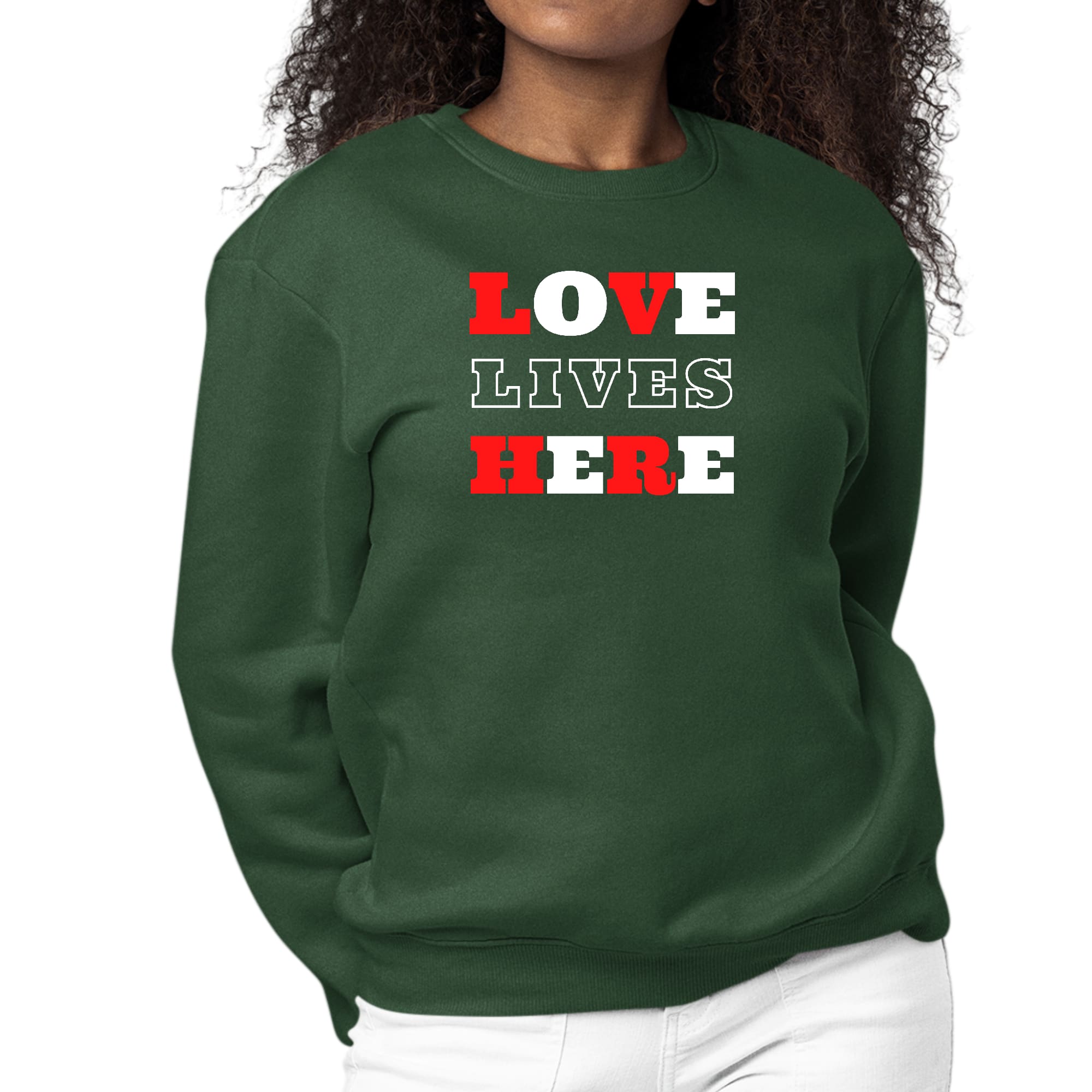 The graphic design on this sweatshirt is not just stylish; it carries a powerful message. 'Love Lives Here' serves as a reminder of the importance of love and compassion in our lives. This makes it a perfect gift for friends, family, or even yourself. Wear it to church, gatherings, or simply while running errands, and let your outfit speak volumes about your values.