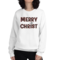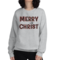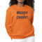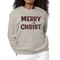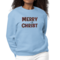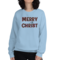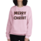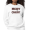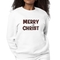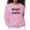 Taking care of your Women's Graphic Sweatshirt is a breeze. Simply machine wash it in cold water and tumble dry on low heat. The fabric is designed to resist fading, ensuring that the vibrant colors of the Merry with Christ design remain intact wash after wash. Enjoy the convenience of easy maintenance while looking stylish.