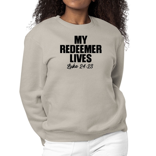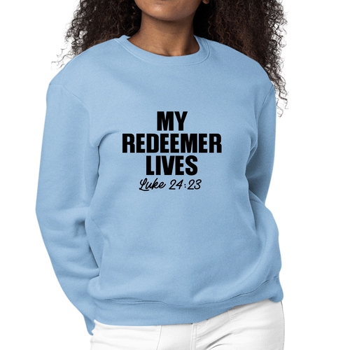 Introducing the Women's Graphic Sweatshirt featuring the inspiring 'My Redeemer Lives' print, a perfect blend of style and comfort. This crewneck sweatshirt is designed for those who appreciate both fashion and functionality. Made from a high-quality 50/50 cotton and polyester blend, it offers a soft feel against the skin while ensuring durability for everyday wear.