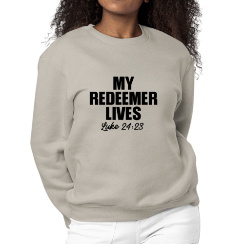 Wearing the 'My Redeemer Lives' print is not just about fashion; it's about expressing your beliefs and values. This sweatshirt serves as a reminder of hope and faith, making it a meaningful addition to your wardrobe. It's perfect for casual outings, church events, or simply as a daily reminder of your beliefs.