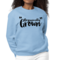 Introducing the Women's Graphic Sweatshirt - Organically Grown - Affirmation Inspiration, a perfect blend of style, comfort, and sustainability. This black crewneck sweatshirt is designed for women who appreciate both fashion and meaningful messages. Made from a durable 50/50 cotton and polyester blend, this sweatshirt is not only soft against the skin but also built to withstand the rigors of daily wear. Whether you're lounging at home, running errands, or meeting friends, this sweatshirt will keep you comfortable and stylish.