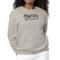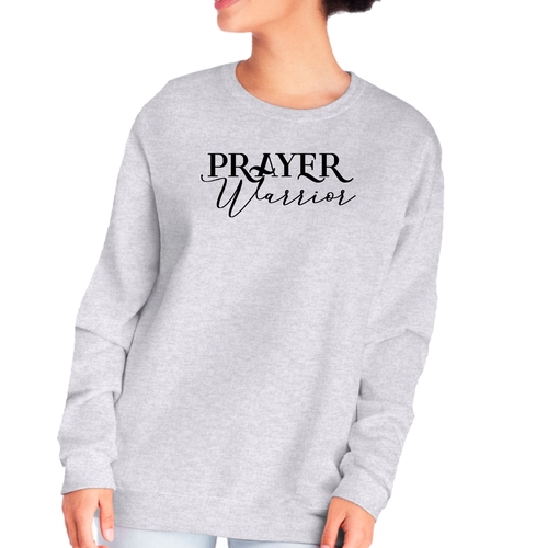 The Prayer Warrior script illustration adds a meaningful touch to this sweatshirt, making it perfect for various occasions. Whether you're attending a casual gathering, a church event, or simply enjoying a day out, this sweatshirt allows you to showcase your faith while looking fashionable.