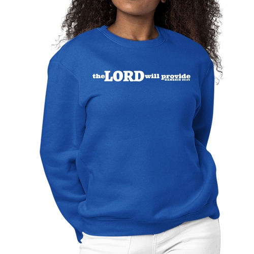 Introducing our Women's Graphic Sweatshirt featuring the uplifting message 'The Lord Will Provide' inspired by Genesis 22:14. This stylish and comfortable sweatshirt is perfect for those who want to express their faith while enjoying a cozy fit. Made from a durable 50/50 cotton and polyester blend, this sweatshirt is designed to withstand daily wear while providing exceptional comfort.