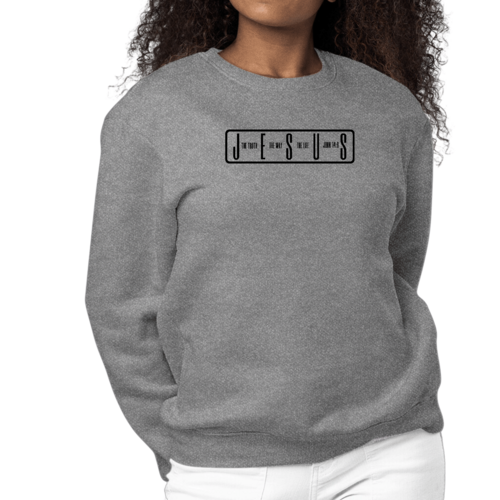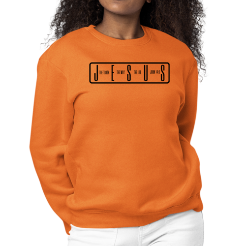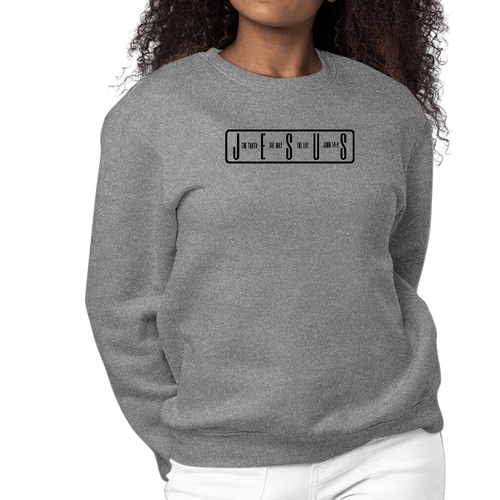 Introducing our Women's Graphic Sweatshirt featuring the powerful quote 'The Truth The Way The Life' from John 14:6. This stylish and comfortable sweatshirt is perfect for those who want to express their faith while enjoying a cozy fit. Made from a durable 50/50 cotton and polyester blend, this sweatshirt is designed to withstand everyday wear while providing ultimate comfort.