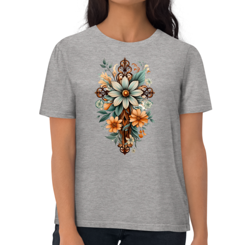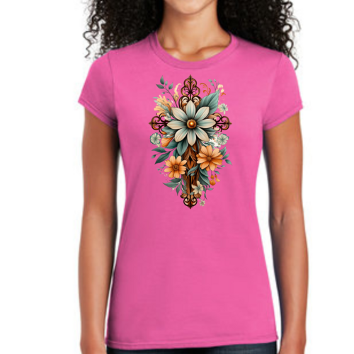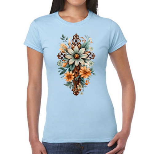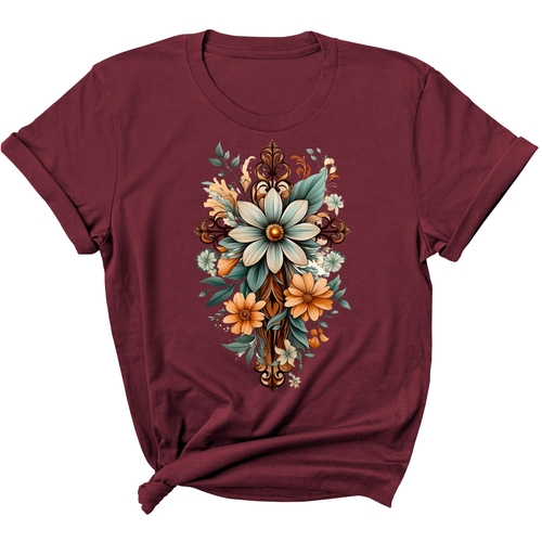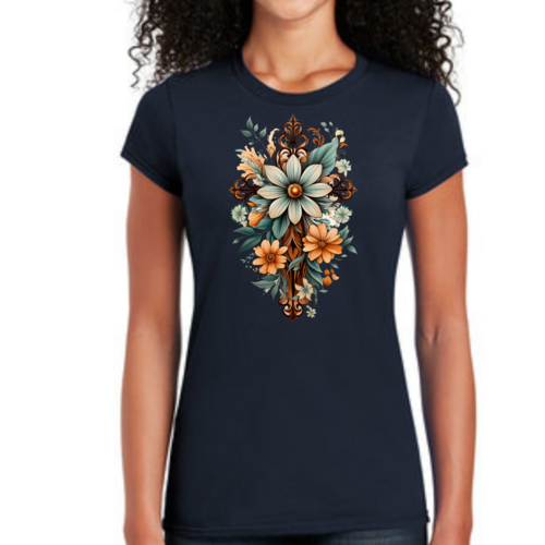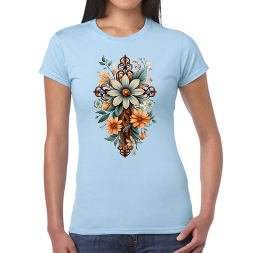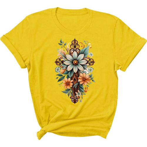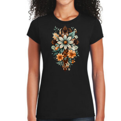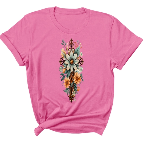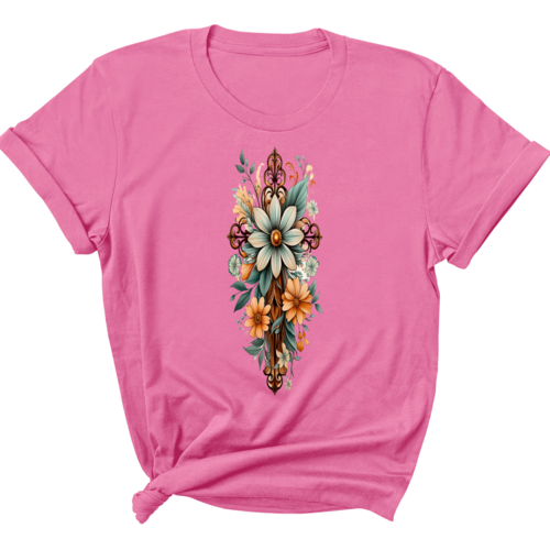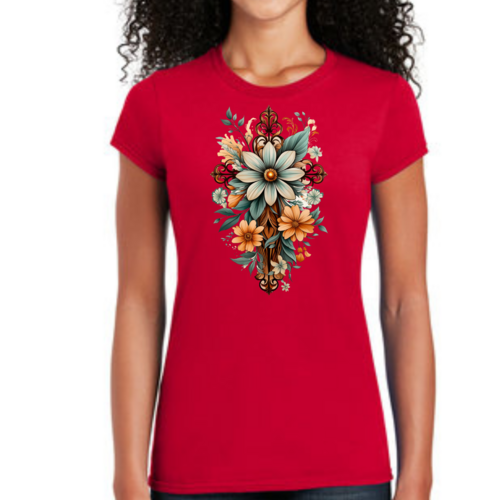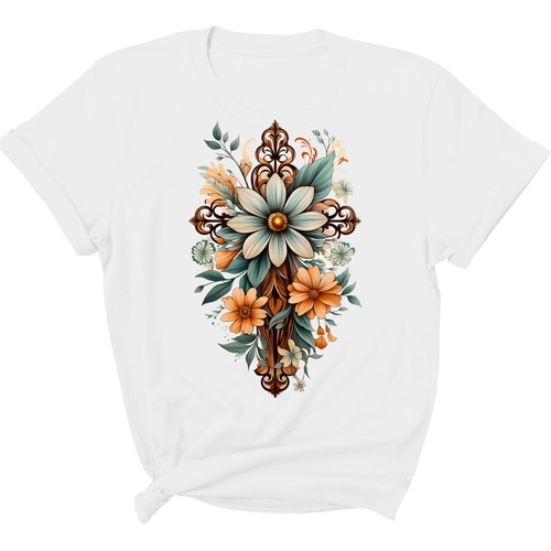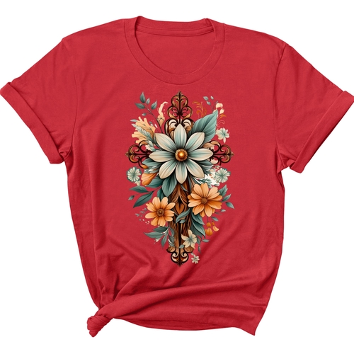 This Women's Graphic T-shirt is not just a piece of clothing; it's a statement of faith and style. Whether you're attending a church service, going out with friends, or simply lounging at home, this T-shirt is the perfect choice. The beautiful floral cross design adds a touch of elegance, making it suitable for various occasions. Pair it with your favorite accessories to complete your look.