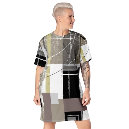 The Womens Graphic T-shirt Dress with Abstract Brown Geometric Shapes is the ultimate wardrobe essential for modern women. This dress combines comfort and style, making it suitable for various occasions, from casual outings to more dressed-up events. Its unique design features abstract brown geometric shapes that add a touch of artistic flair to your outfit, ensuring you stand out wherever you go.