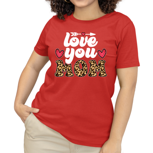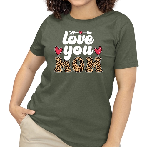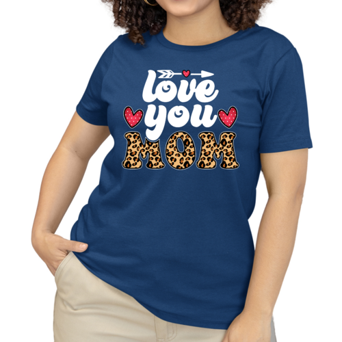 Whether you're treating yourself or surprising your mom with a special gift, our Women's Graphic T-shirt with the 'Love You Mom' leopard print is sure to bring a smile to her face. It's a beautiful way to express your feelings and celebrate the incredible women in your life.