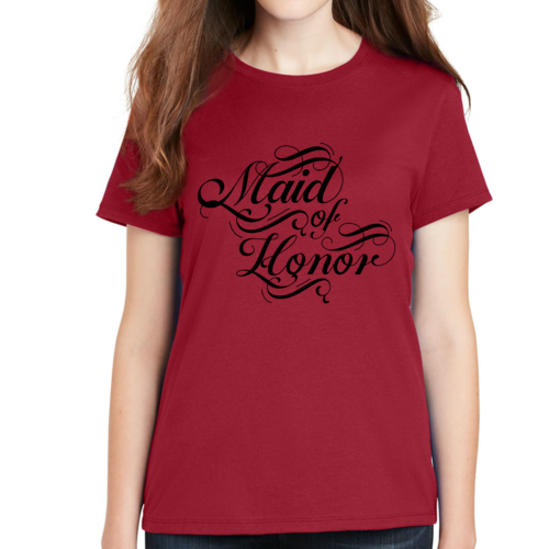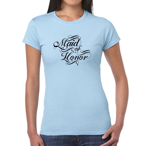 To keep your Women's Graphic T-shirt Maid of Honor looking its best, we recommend machine washing it in cold water and tumble drying on low heat. Avoid using bleach or harsh detergents to preserve the quality of the fabric and the graphic print. With proper care, this t-shirt will remain a cherished part of your wardrobe for years to come.