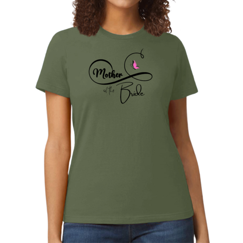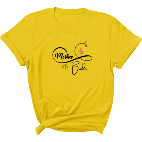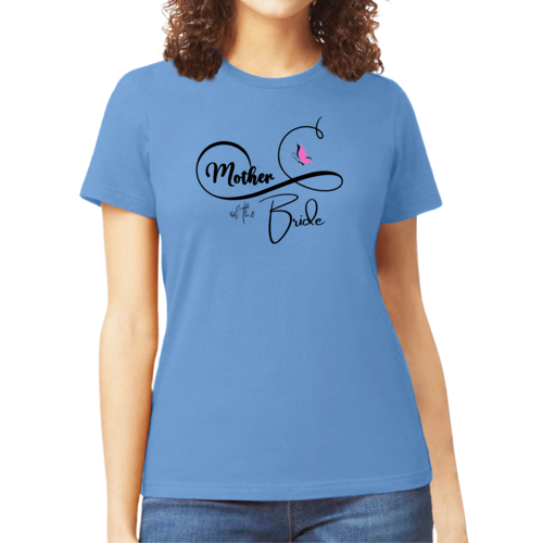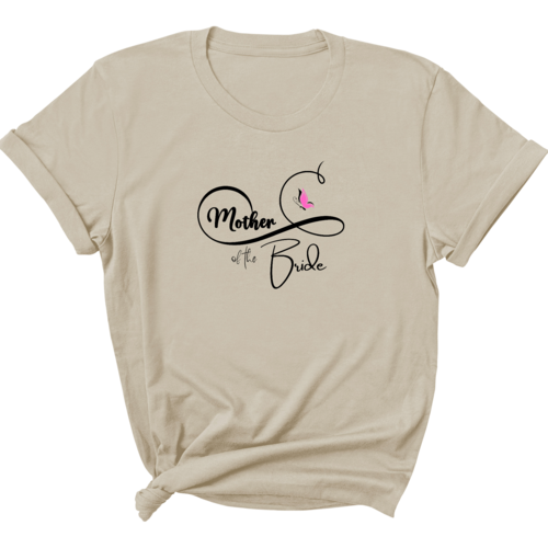 The butterfly illustration on the shirt adds a unique and stylish touch, making it a standout piece for any Mother of the Bride. This graphic tee is not just a piece of clothing; it's a statement of love and celebration for your daughter’s special day. Pair it with your favorite jeans or a skirt for a chic look that is perfect for any wedding-related event.