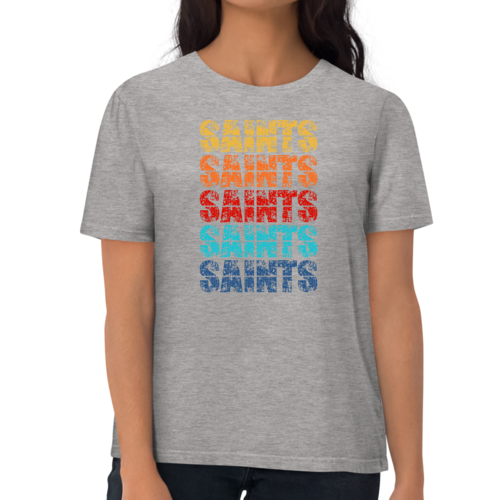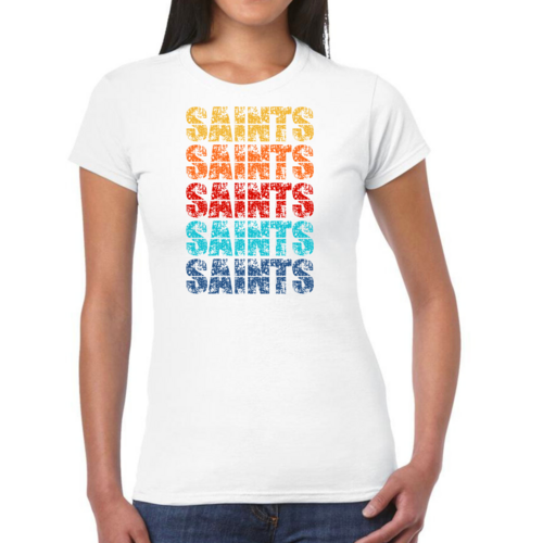 Introducing our Women's Graphic T-shirt, a stunning piece that showcases a vibrant Saints Colorful Art Illustration. This fitted graphic tee is not just a piece of clothing; it is a canvas for self-expression and creativity. Made from high-quality materials, this shirt is designed to resonate with those who appreciate art and individuality.
