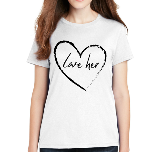 The 'Say it Soul Love Her' graphic adds a unique touch to this t-shirt, allowing you to express your personality and values. This eye-catching design is perfect for those who want to make a statement while staying comfortable. Pair it with jeans, shorts, or skirts for a casual yet stylish look that can be dressed up or down.