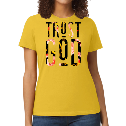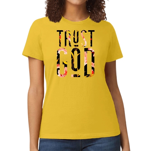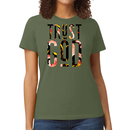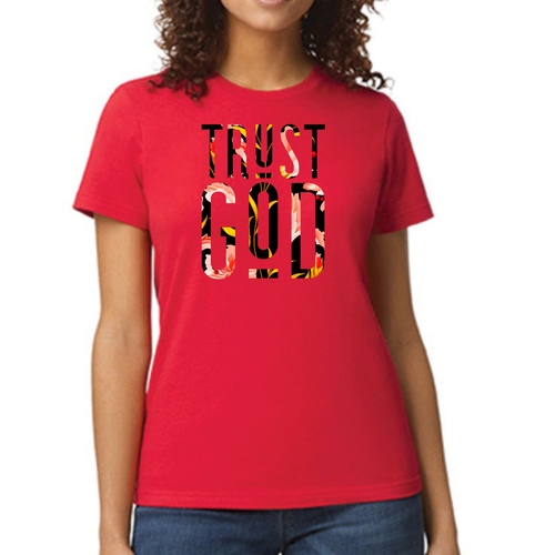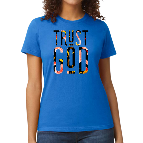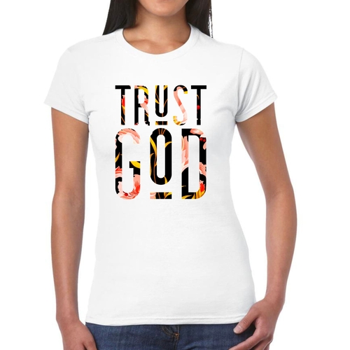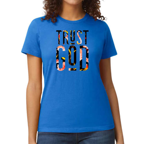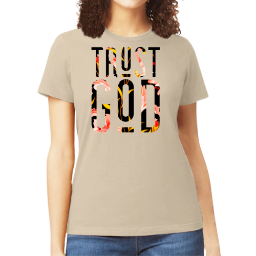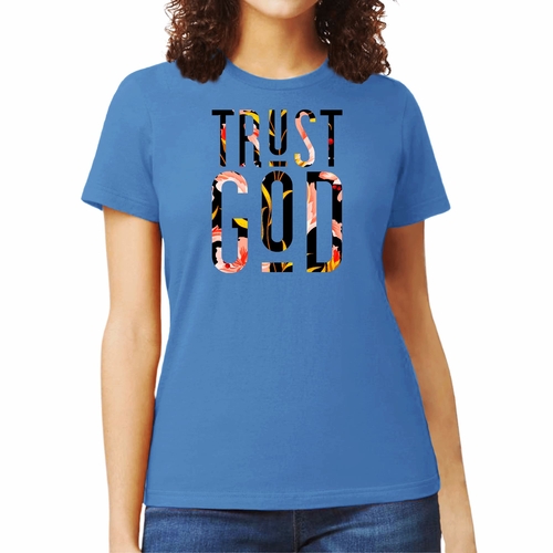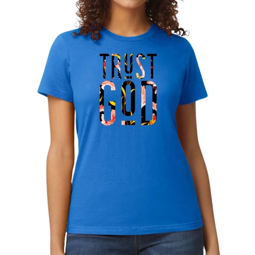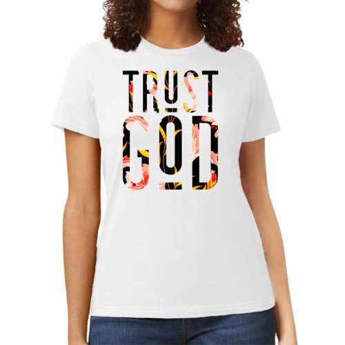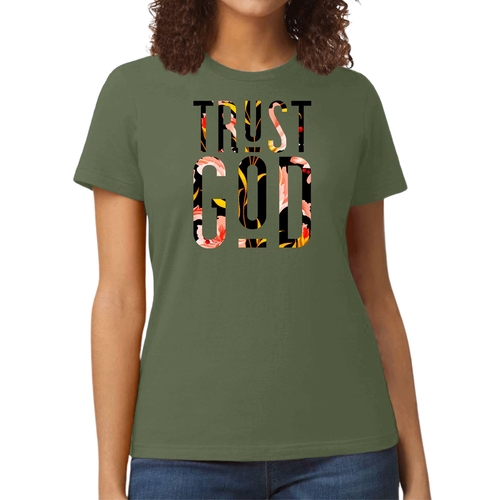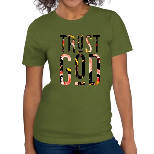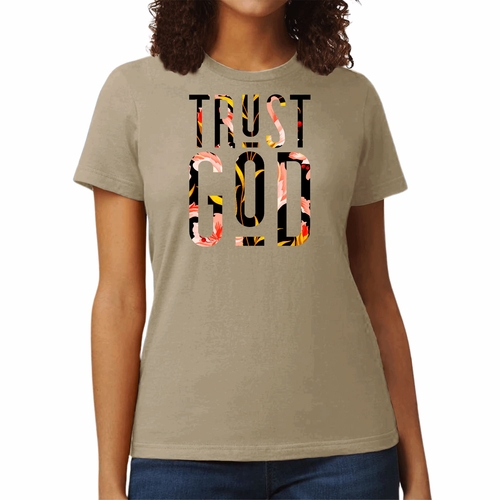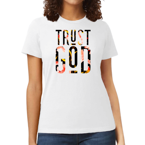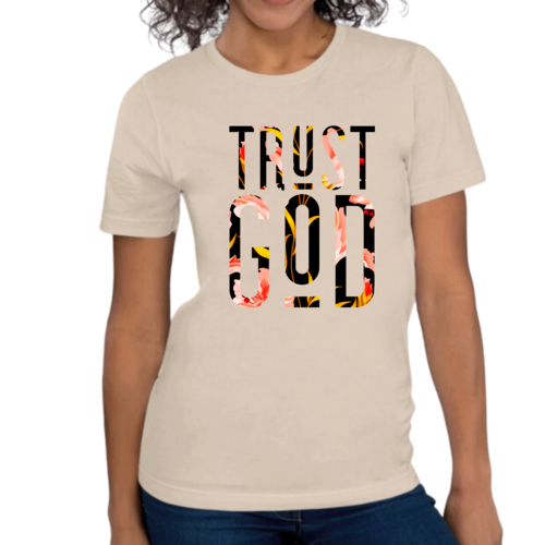 Embrace your artistic essence and let your individuality shine with our Womens Graphic T-shirt featuring the Trust God Floral Print. This tee is not just a piece of clothing; it's a statement of who you are. Experience the beauty of self-expression and make this stunning graphic tee a part of your collection today!