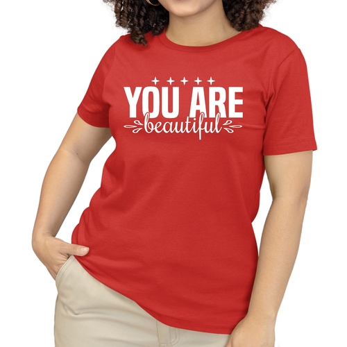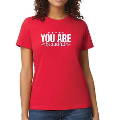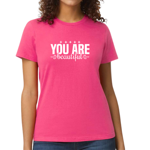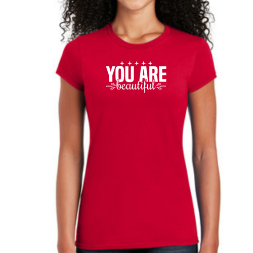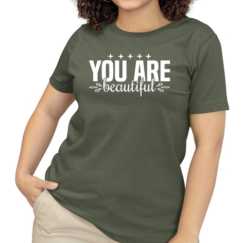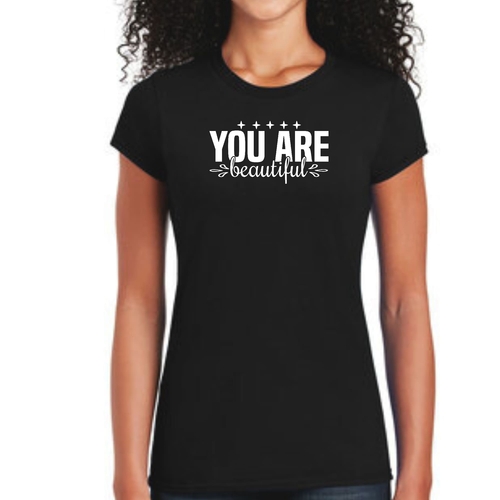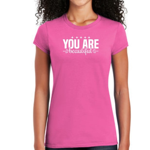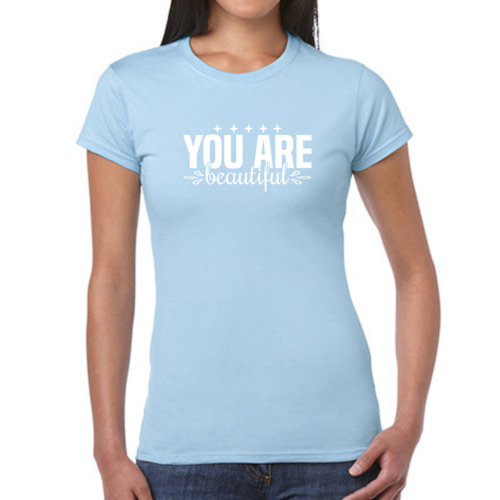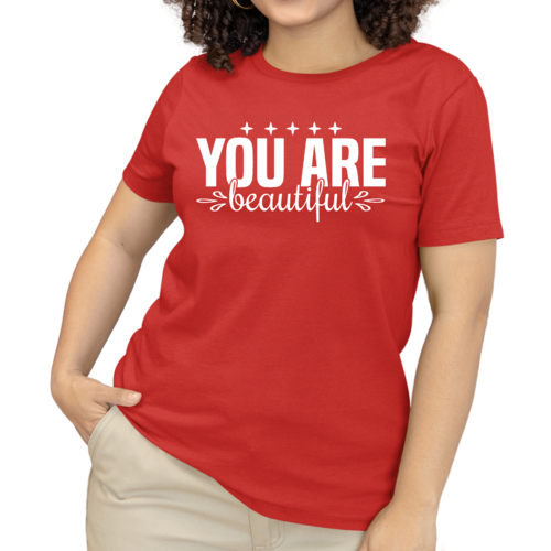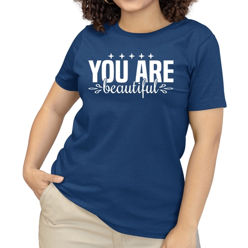 Introducing our Women's Graphic T-shirt featuring the uplifting affirmation 'You Are Beautiful'. This stylish and comfortable T-shirt is designed to inspire confidence and positivity in everyone who wears it. Made from high-quality preshrunk cotton, this T-shirt not only looks great but also feels fantastic against the skin. Whether you're dressing up for a casual outing or lounging at home, this T-shirt is the perfect addition to your wardrobe.