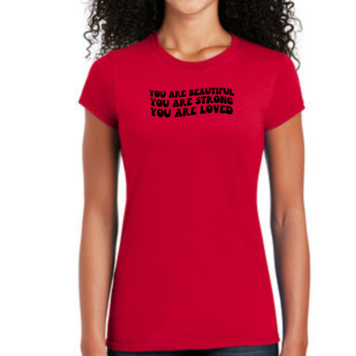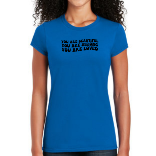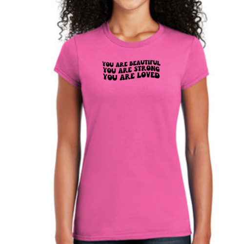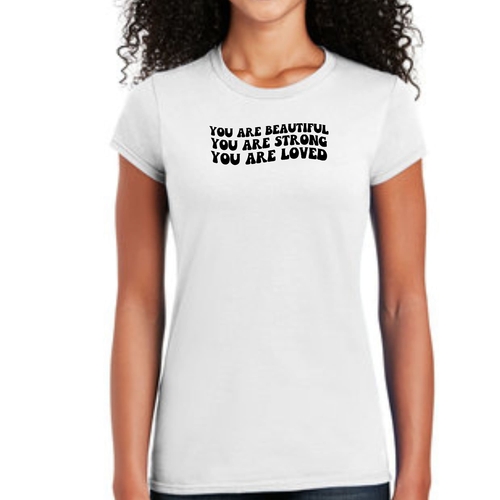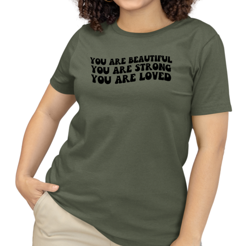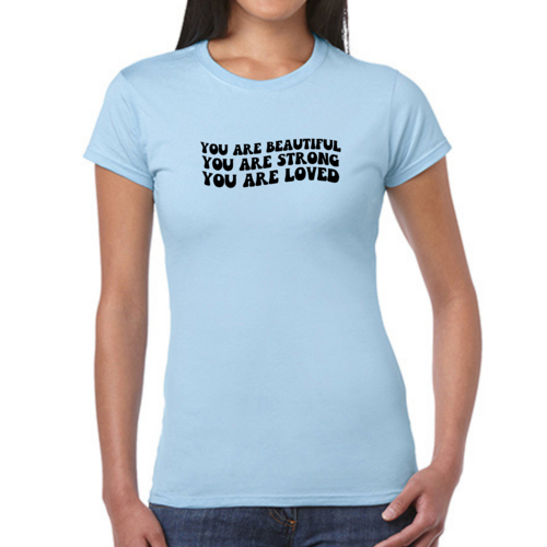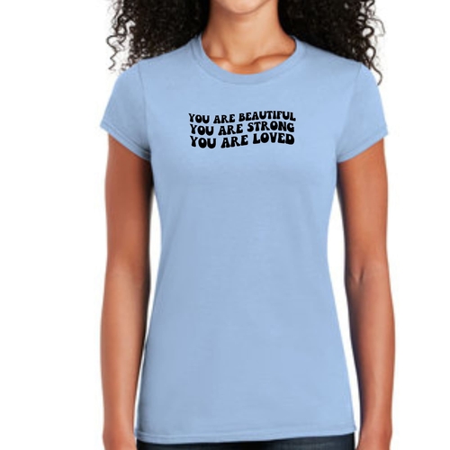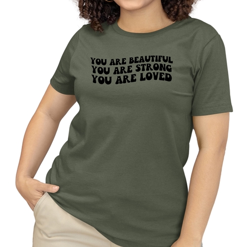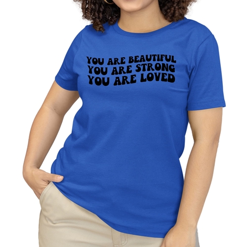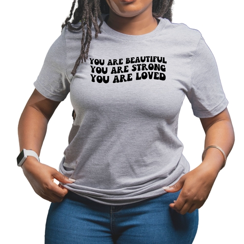 Whether you're looking to express your individuality or simply want a comfortable and stylish T-shirt, our Women's Graphic T-shirt featuring the 'You are Beautiful Strong' illustration is the perfect choice. Embrace your strength and beauty with this unique piece that speaks to your soul.