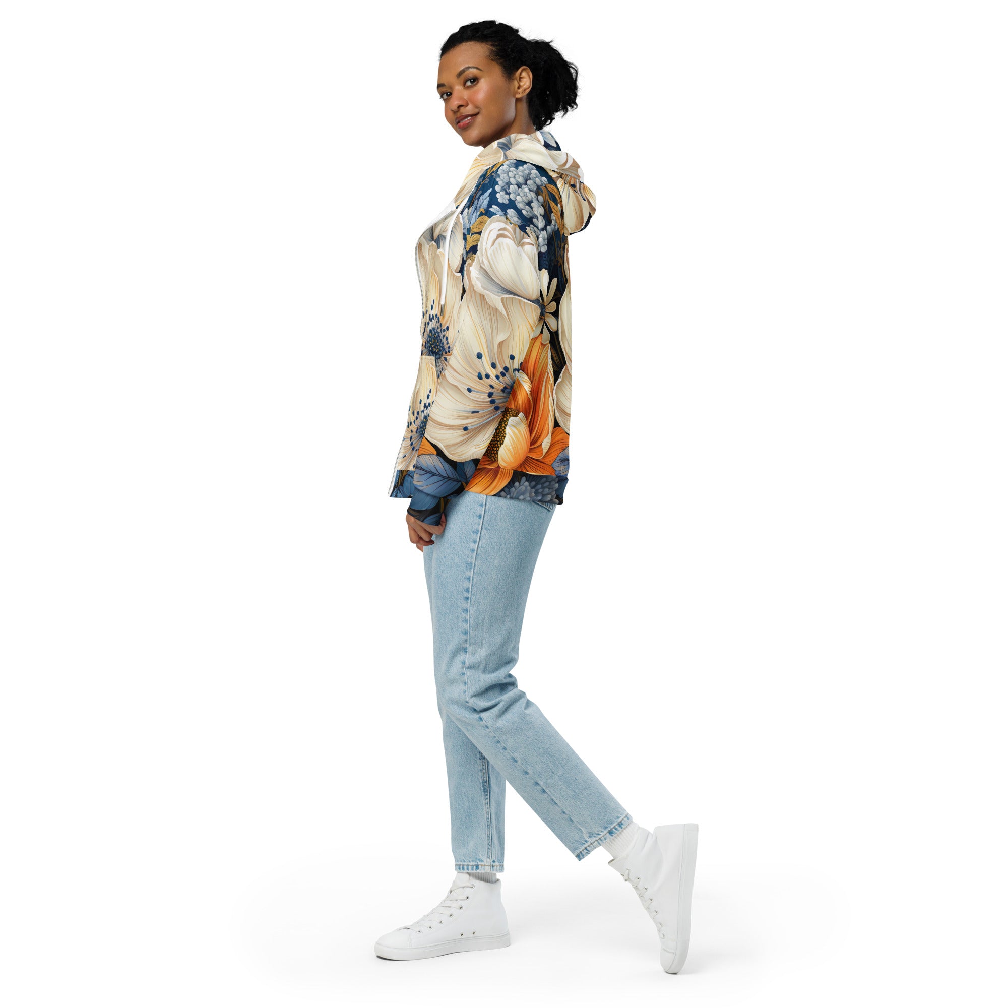 Dropship Womens Graphic Zip Hoodie Floral Blue Print