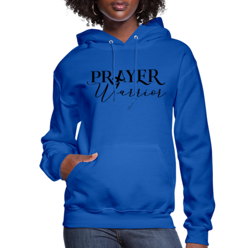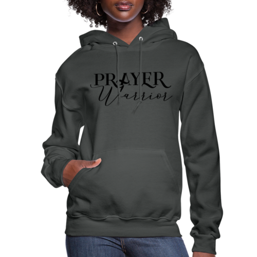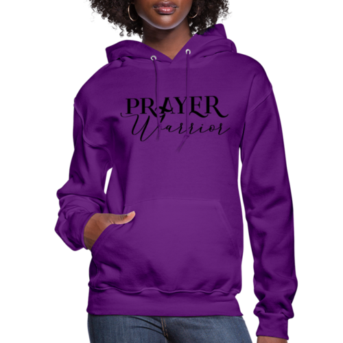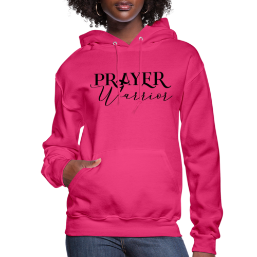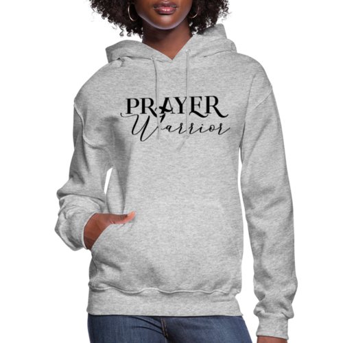 Women's Prayer Warrior Graphic Hoodie featuring a plush interior, adjustable drawstring hood, and ribbed cuffs, perfect for casual wear.