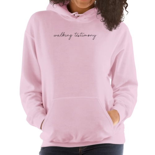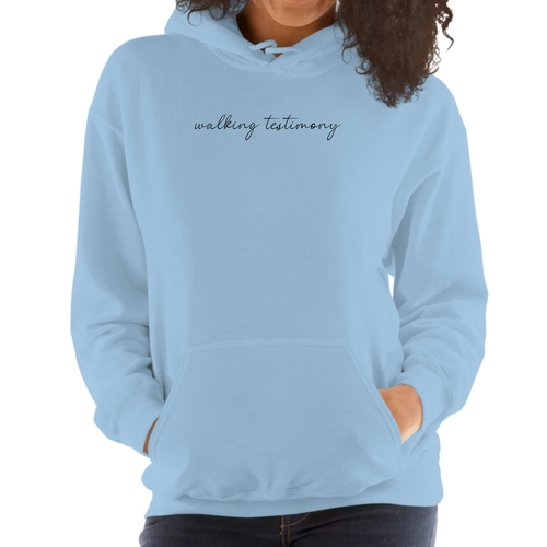 Introducing the Women's Hoodie featuring the 'Say it Soul' Walking Testimony illustration, a perfect blend of style, comfort, and faith-based inspiration. This hoodie is designed for women who want to express their beliefs while enjoying the cozy feel of a high-quality sweatshirt. Made from a soft 50/50 cotton/polyester blend, this hoodie ensures durability and comfort, making it an ideal choice for everyday wear.
