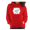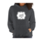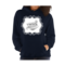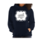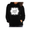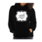 A stylish women's vintage hoodie featuring a unique black illustration on a white background, showcasing its premium quality and comfortable fit.